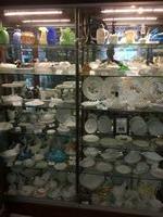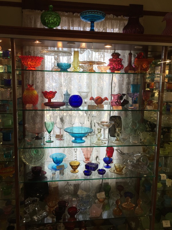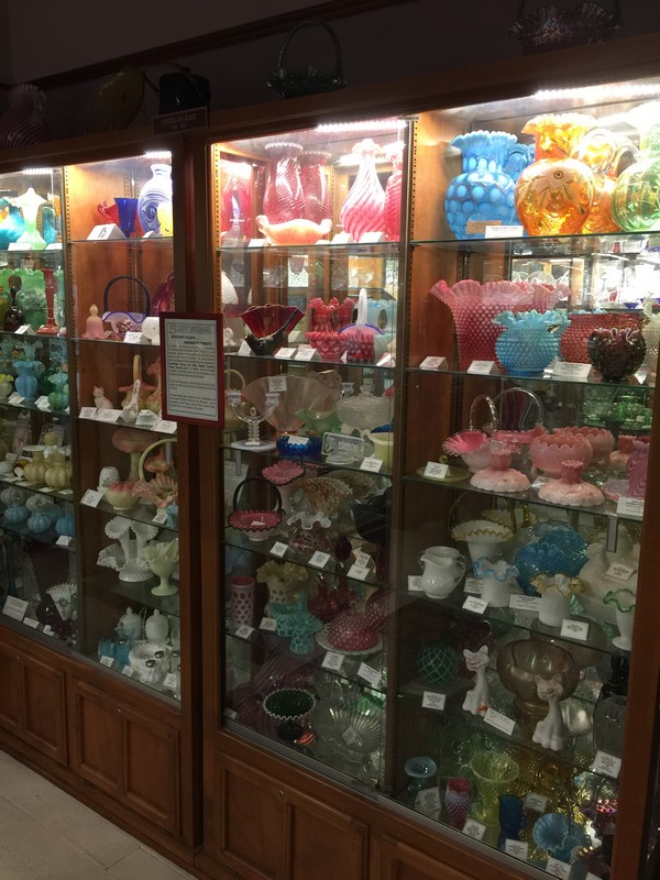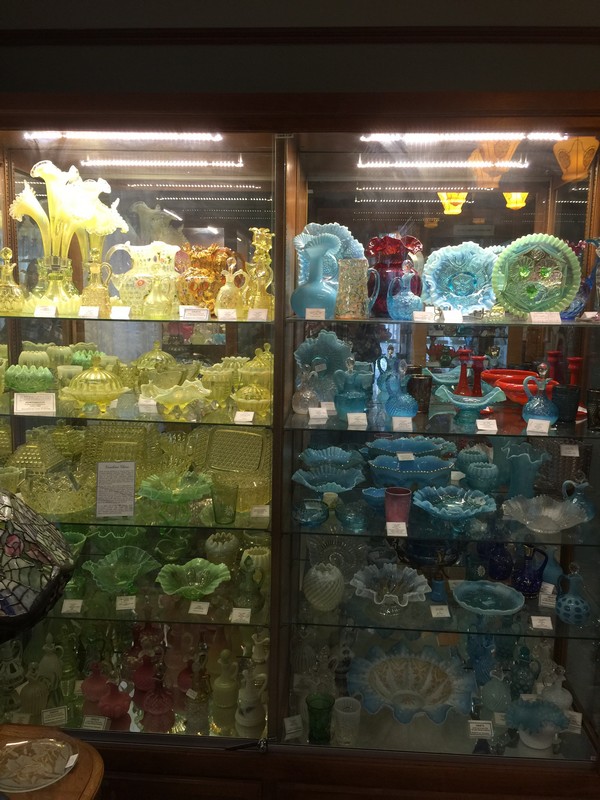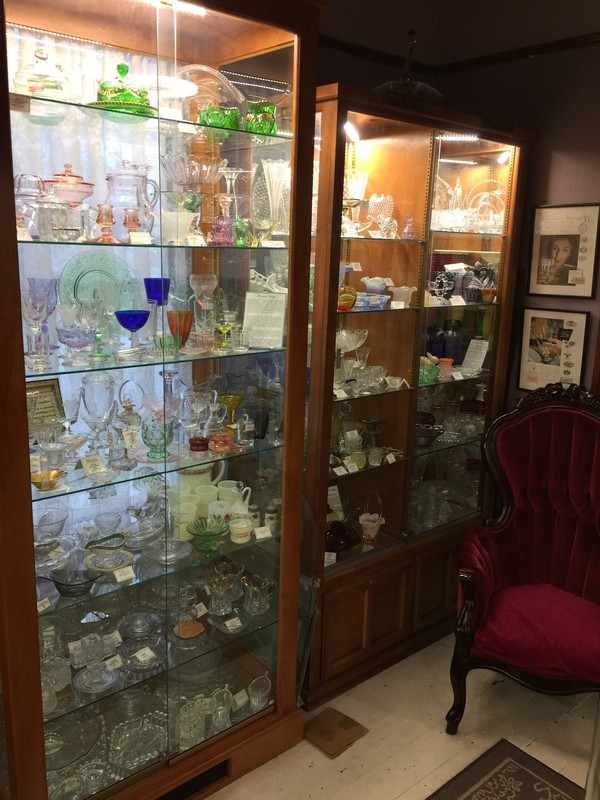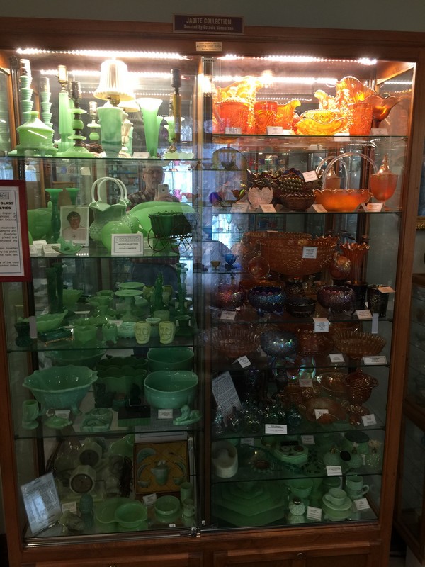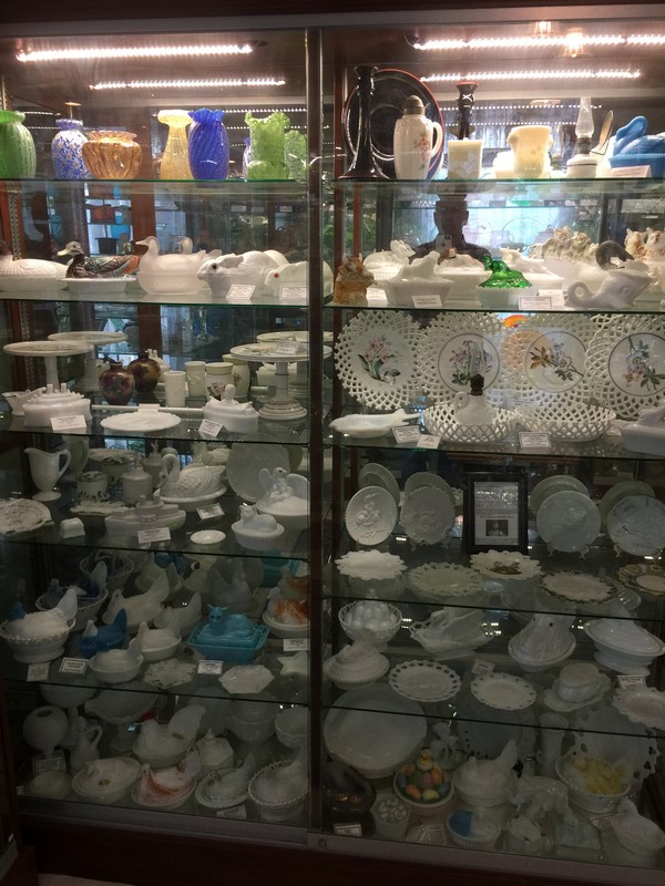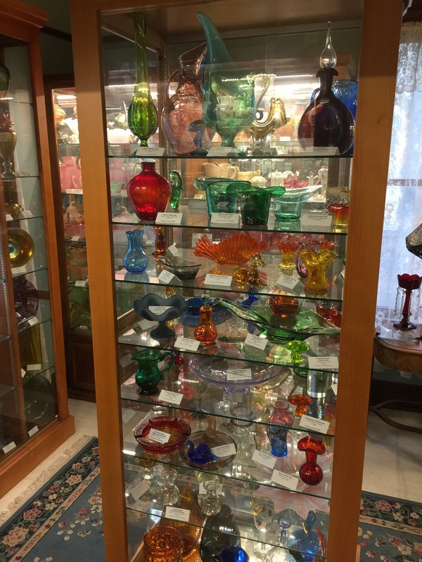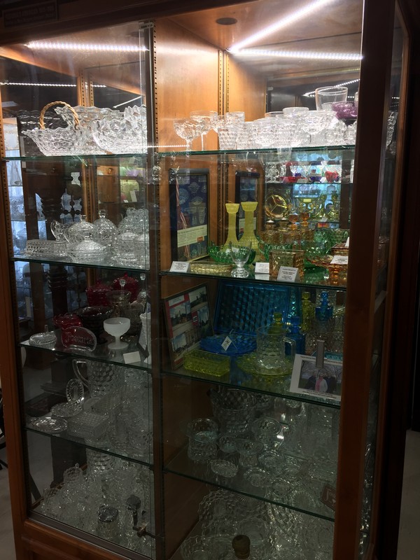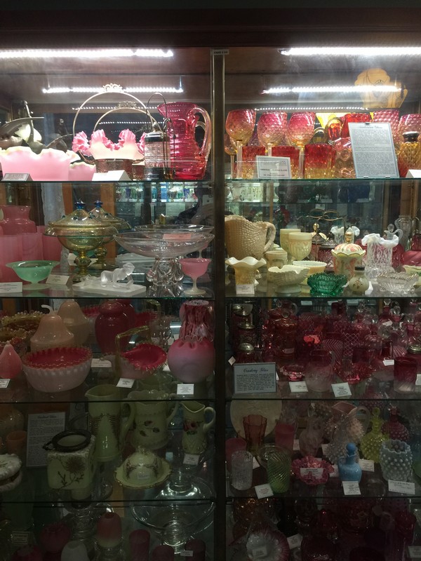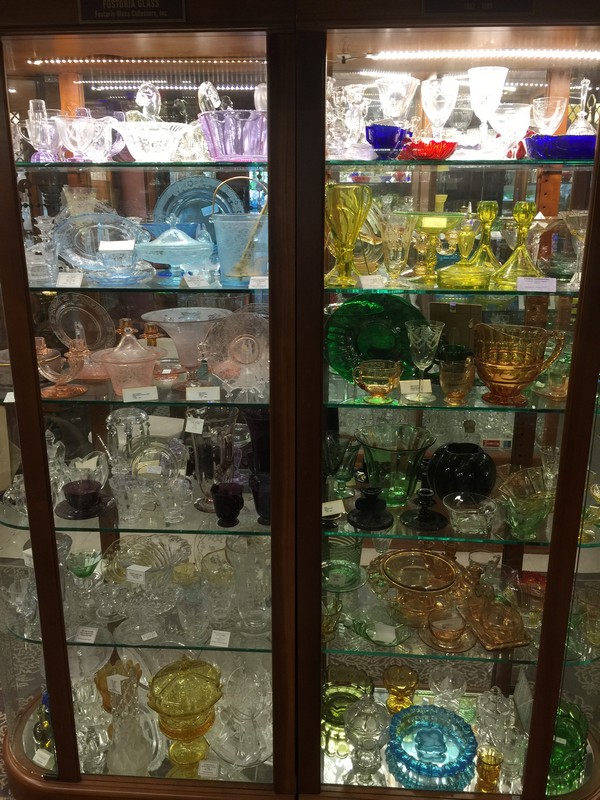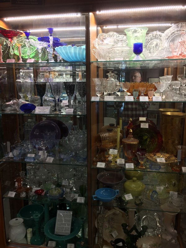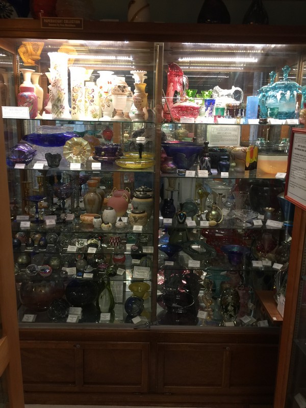 Bear in mind that photographing glass is difficult, at best, and taking photos of glass in enclosed cases is particularly hard - reflections are bound to occur, and at times it is nearly impossible to back up far enough to take in the entire case. With all that said, here are the photos for your enjoyment. Click on the individual photos to see a larger version of each.